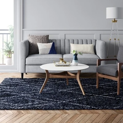 Whether you are styling a new room or want to give an existing one an elegant finish touch, the Diamond Patterned Shag Woven Rug from Project 62â„¢ is just the thing. This shag rug is decorated with a large sketch-like diamond pattern on a contrast-color base for a cool, modern look. The fade- and stain-resistant construction helps keep it looking its best for longer, and the low pile height allows for easy cleaning and placement wherever you like.